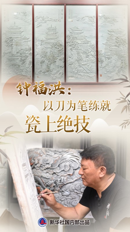 “老雕”是大伙儿对景德镇市御窑陶瓷研究所副所长钟福洪的昵称,他专注陶瓷雕刻,一把刻刀使得炉火纯青。