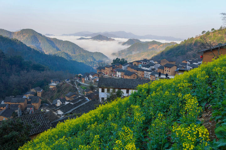 在黄山市黟县西递镇潭口村,沿着一条狭窄山路走,很快视野便豁然开朗。100多栋徽州老房子散布在竹林、桑田、菜园与温泉间,一个徽州自然生长的村庄在山谷中被完整地保存下来。