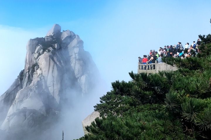 游客正在黄山上观看日出。(黄山市委宣传部供图)