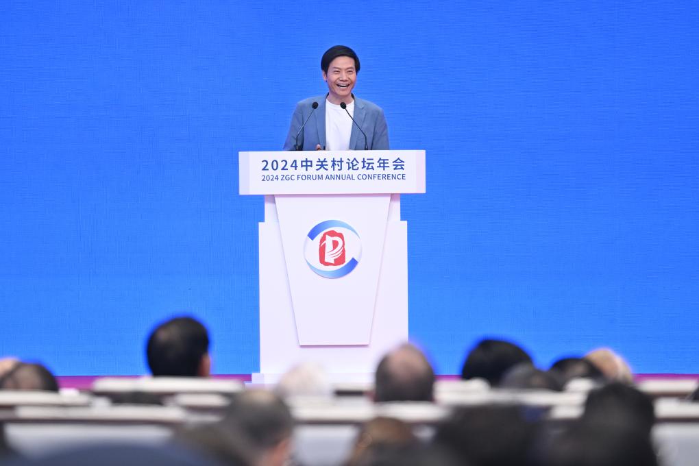 2024年4月25日,小米集团创始人、董事长兼CEO雷军在2024中关村论坛年会全体会议中演讲。 新华社记者 李鑫 摄