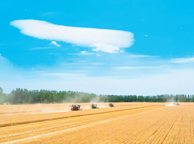 河南省西平县老王坡万亩高标准良田麦收现场。卫百民摄