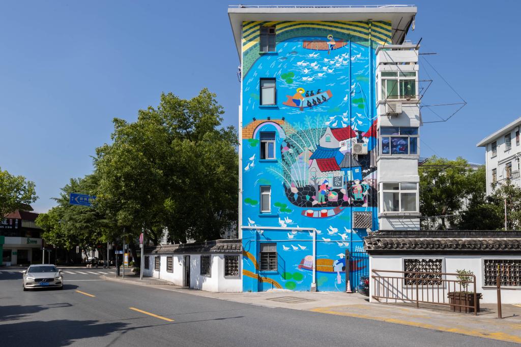 6月18日在枫泾古镇附近拍摄的金山农民画。新华社记者 王翔 摄