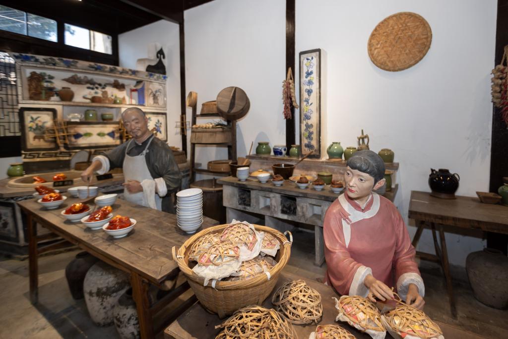 枫泾丁蹄非遗文化展示馆展示当地丁蹄制作的传统技艺。新华社记者王翔摄