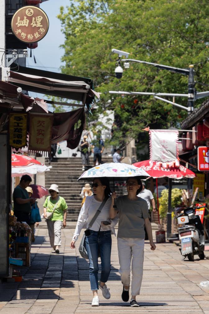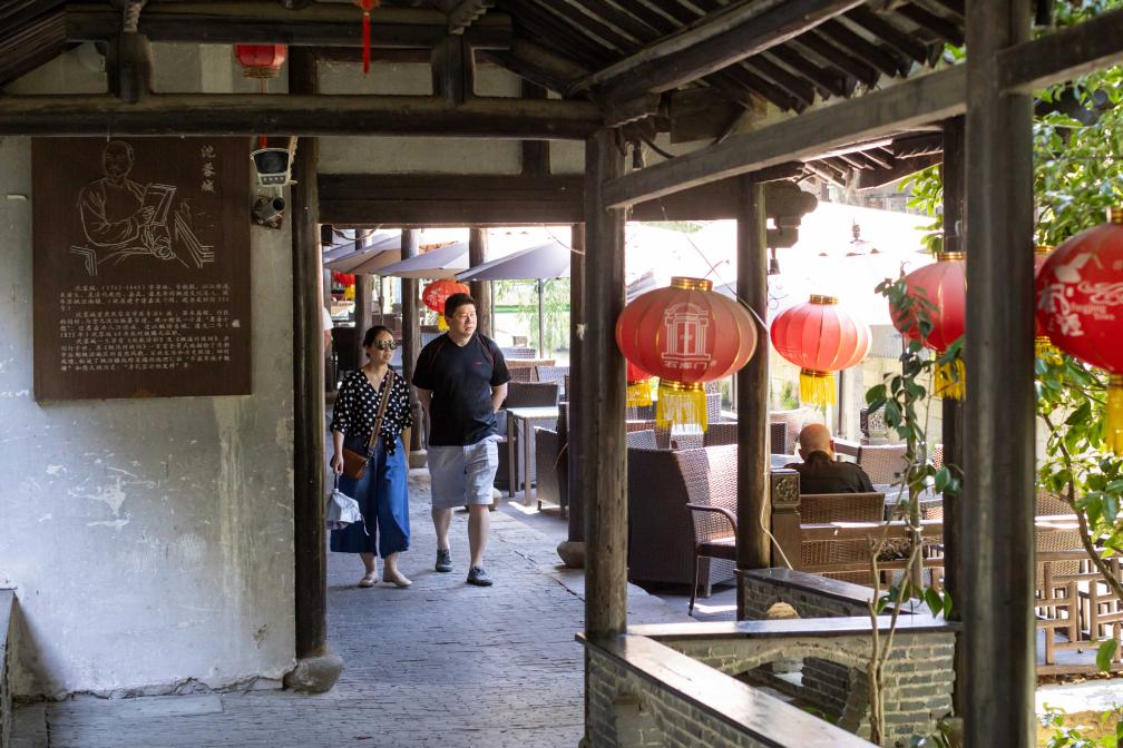 6月18日,人们在枫泾古镇旅游区游玩。新华社记者 王翔 摄