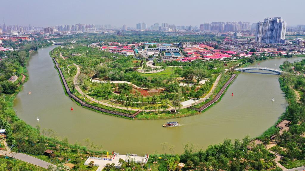 2023年5月6日在河北沧州拍摄的京杭大运河河道。