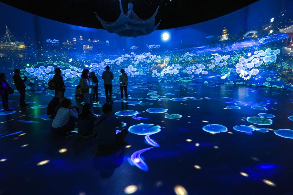 2024年4月23日,游客在江苏扬州中国大运河博物馆参观游览。