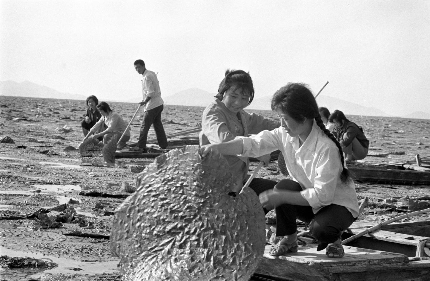 1980年,山东东平湖的渔民们在采摘鸡头米。