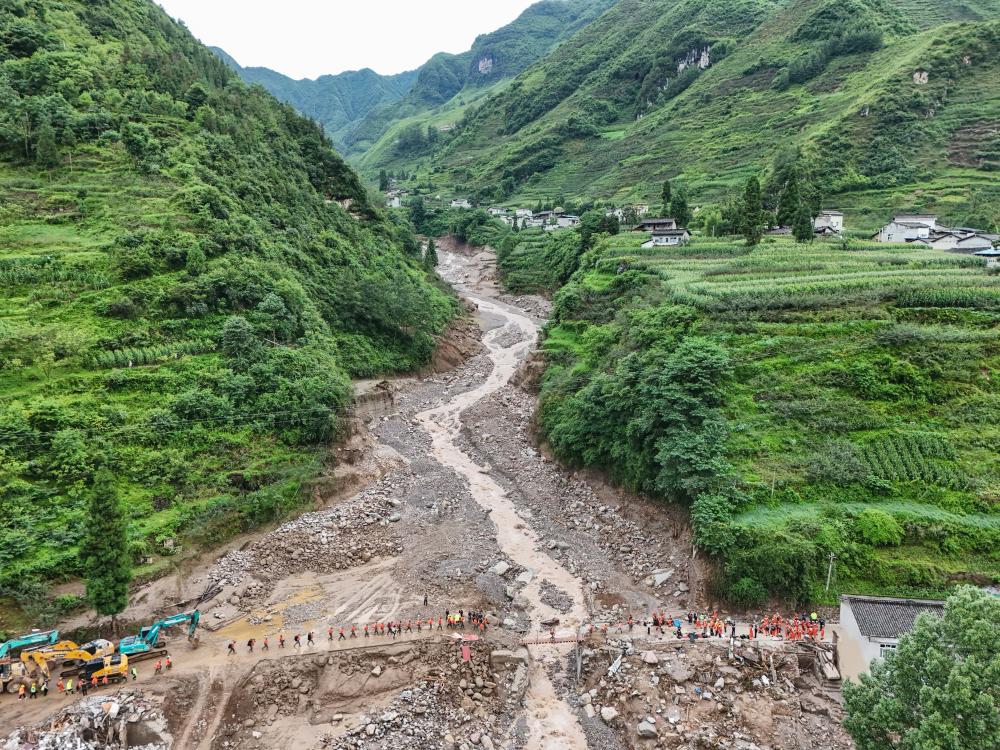 这是7月21日拍摄的四川省雅安市汉源县马烈乡新华村搜救现场。新华社记者 王曦 摄