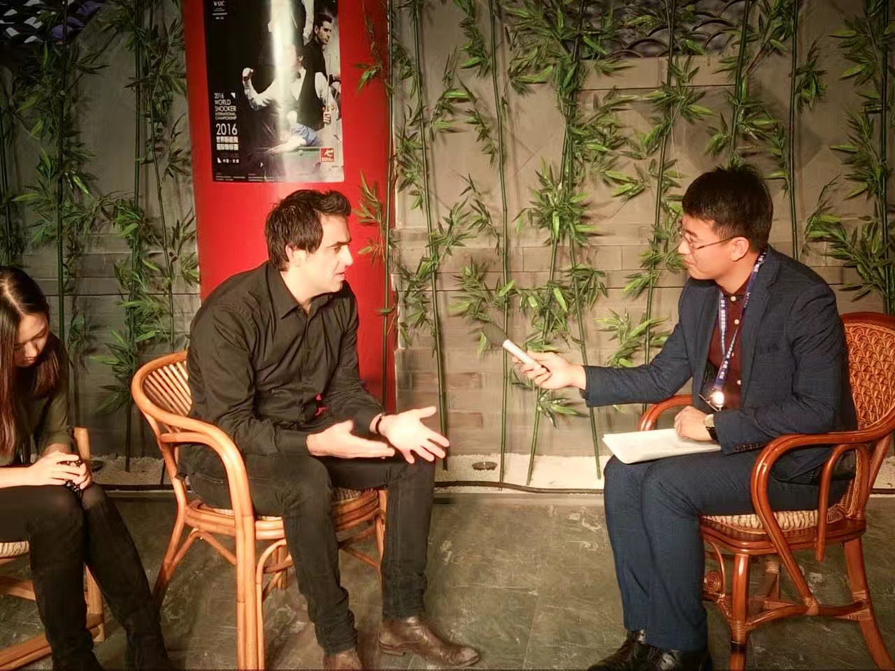 大庆市融媒体中心(大庆广播电视台)孙豪 2017年,中国大庆世界斯诺克国际锦标赛期间,采访世界斯诺克球星罗尼·奥沙利文