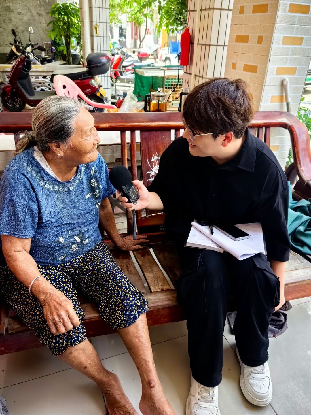【工作照】三亚传媒影视集团吴跃超(右1)、2024年5月12日、三亚市吉阳区红沙社区、采访独居长者