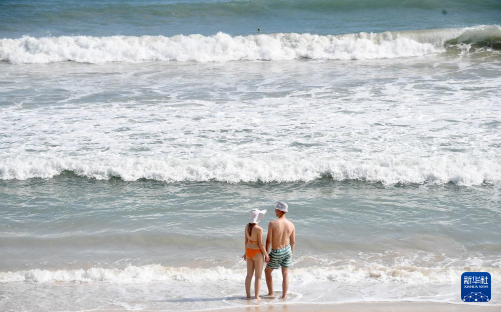 9月8日,三亚市大东海景区恢复对外开放,游客在海边休闲。新华社记者 赵颖全 摄