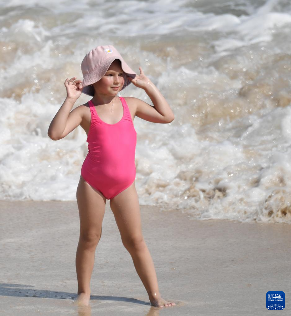 9月8日,三亚市大东海景区恢复对外开放,一名小朋友在海边玩耍。新华社记者 赵颖全 摄