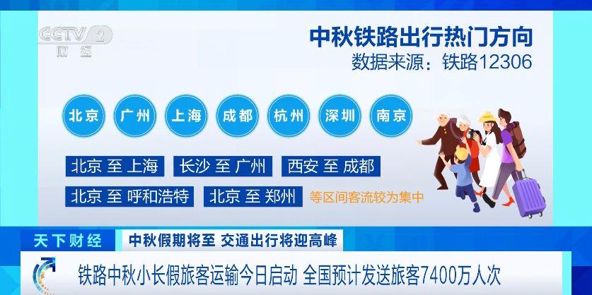 记者从国铁集团获悉,为期5天的铁路中秋小长假运输14日启动。从14日至18日,全国铁路预计发送旅客7400万人次,日均发送旅客1480万人次。