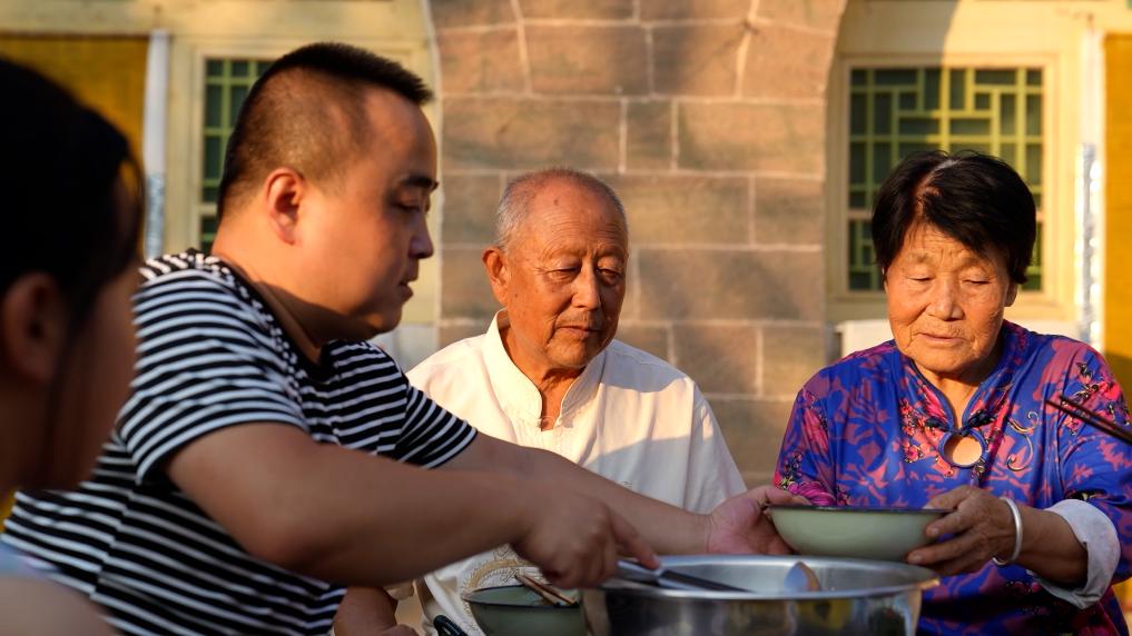 佳节临近,天气渐凉,高思茂和家人围坐在窑洞前吃着热乎的团圆饭。陕北烩菜的香气与枣糕的香甜,让家的滋味愈发浓郁。