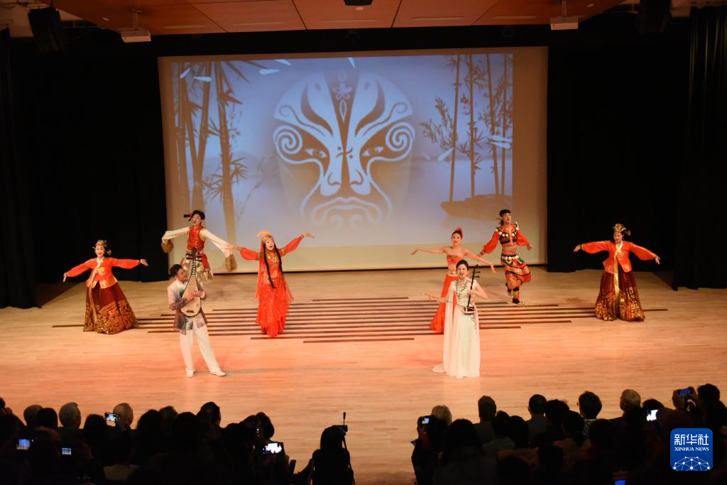 9月15日,在新西兰南岛最大城市克赖斯特彻奇,演员在中秋诗韵晚会上表演。新华社记者 卢怀谦 摄