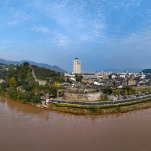 11月22日在浙江临海拍摄的黄大树参与修复的台州府城墙(无人机全景照片)。