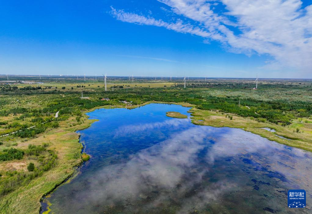 在内蒙古通辽市科尔沁左翼后旗,努古斯台项目区内绿意盎然(2024年9月10日无人机照片)。新华社记者 连振 摄