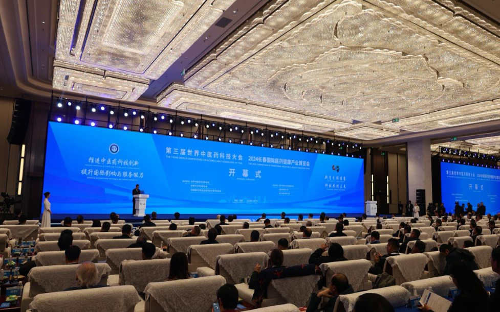 12月7日,第三届世界中医药科技大会、2024长春国际医药健康产业博览会在吉林省长春市开幕。这是开幕式现场。新华社记者唐铭泽 摄