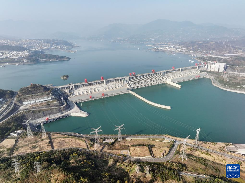 12月14日在湖北省宜昌市秭归县茅坪镇拍摄的三峡大坝及三峡电站外送输电线路(无人机照片)。新华社发(王辉富摄)
