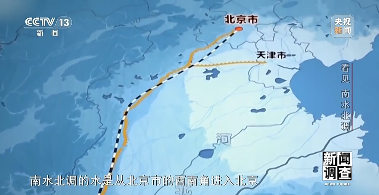 北京市水利规划设计研究院 正高级工程师 林晨:南水北调的水是从北京市的西南角进入北京,然后沿着西四环一路北上进入团城湖,分配到北京市的千家万户。