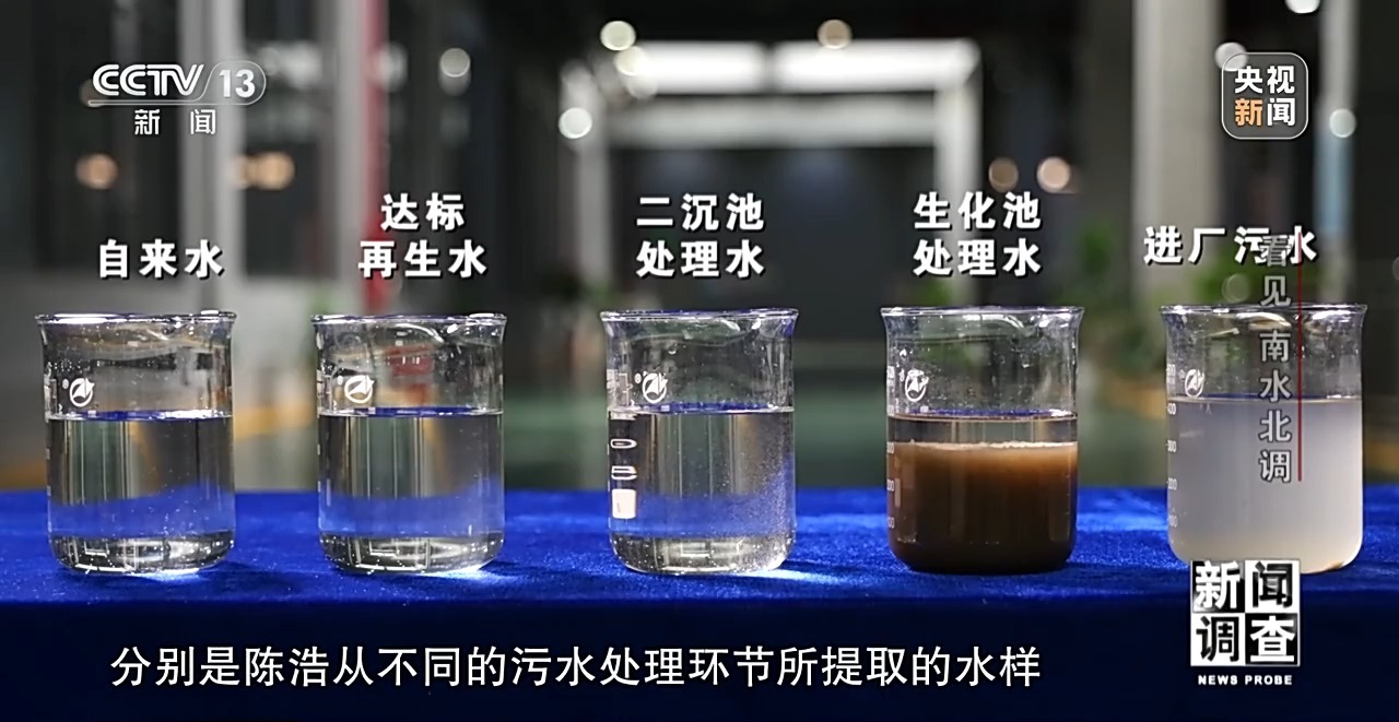 为了更直观地给我们展示,陈浩决定取一些进厂污水和处理后的再生水进行对比。