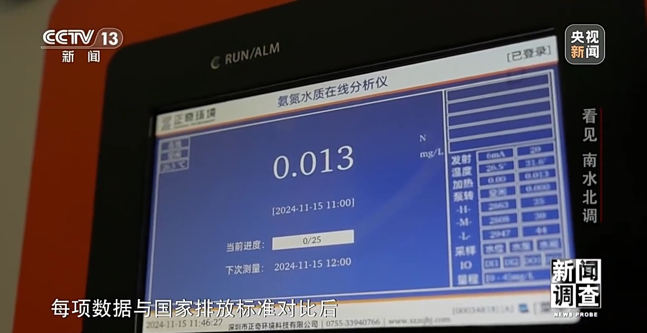 在线监测室中的四台设备,实时监测再生水厂处理水中COD(化学需氧量)、总磷、总氮和氨氮的水质指标。每项数据与国家排放标准对比后,最终的处理水质远超国家一级A标准,可达到准四类地表水。适用于一般工业用水及人体非直接接触的娱乐用水。