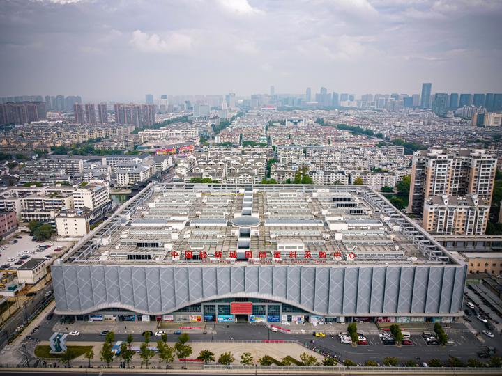 中国轻纺城国际面料采购中心(无人机照片)。新华社记者江汉摄