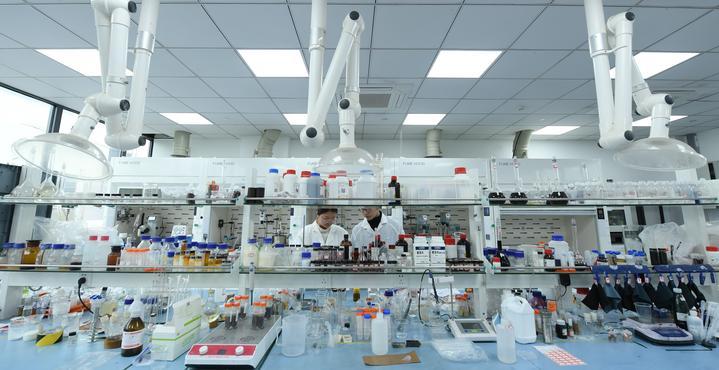 3月15日,科研人员在位于绍兴市柯桥区的鉴湖实验室做液体染料合成实验。新华社记者翁忻旸摄