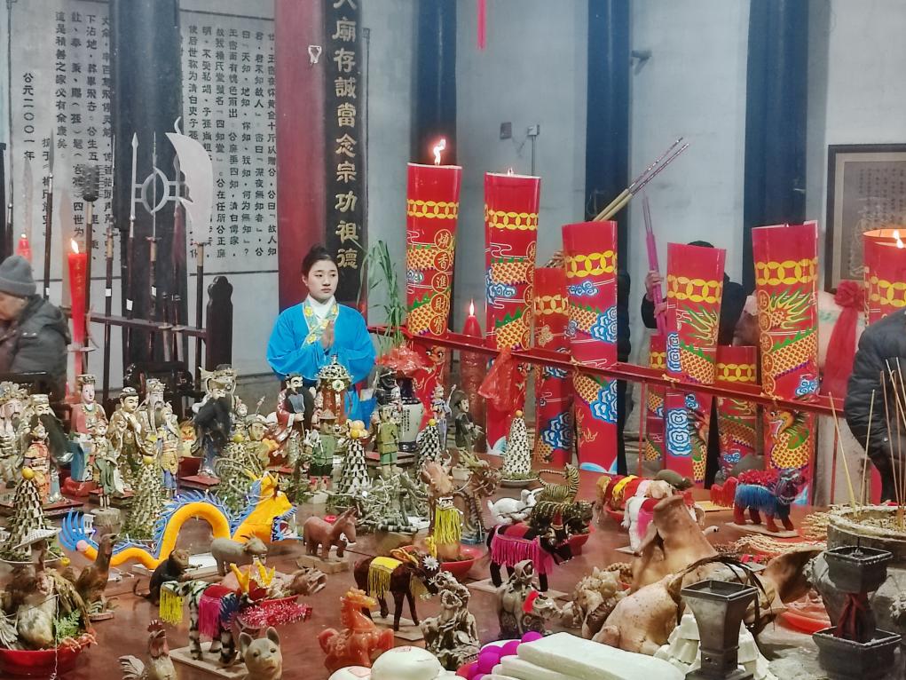 图为村民在供桌上摆放的自制供品。新华社记者 冯源 摄
