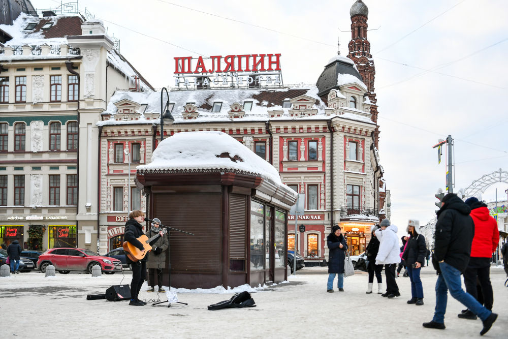当你在喀山鲍曼步行街观看街头艺人的表演时