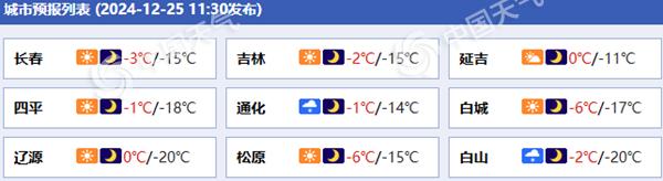 吉林各城市预报。(来源:中国天气网)