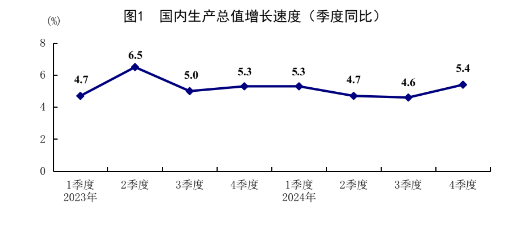 总的来看,2024年国民经济运行总体平稳、稳中有进,高质量发展扎实推进,中国式现代化迈出新的坚实步伐。但也要看到,当前外部环境变化带来不利影响加深,国内需求不足,部分企业生产经营困难,经济运行仍面临不少困难和挑战。下阶段,要坚持以习近平新时代中国特色社会主义思想为指导,全面贯彻落实党的二十大和二十届二中、三中全会精神,按照中央经济工作会议部署,坚持稳中求进工作总基调,完整准确全面贯彻新发展理念,加快构建新发展格局,扎实推动高质量发展,进一步深化改革开放,实施更加积极有为的宏观政策,扩大国内需求,推动科技创新和产业创新融合发展,稳定预期、激发活力,推动经济持续回升向好。