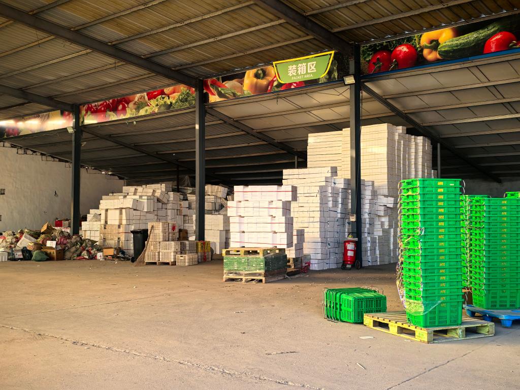 寿光市令欣蔬菜专业合作社内的蔬菜装箱区域。新华社记者叶婧 摄