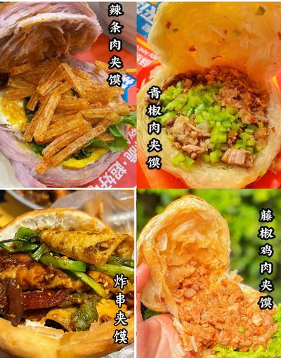 藤椒鸡肉夹馍、鳕鱼夹馍、鸡排夹馍……