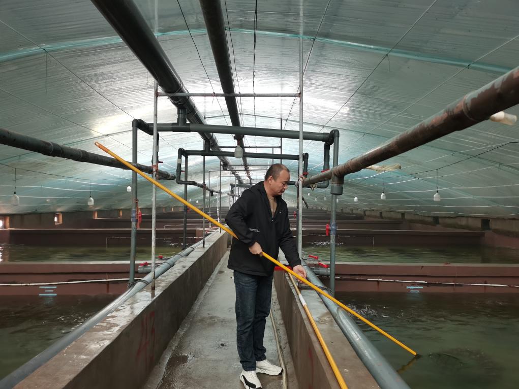 2月28日,养殖基地工作人员查看海马生长情况。(刘子晔摄)