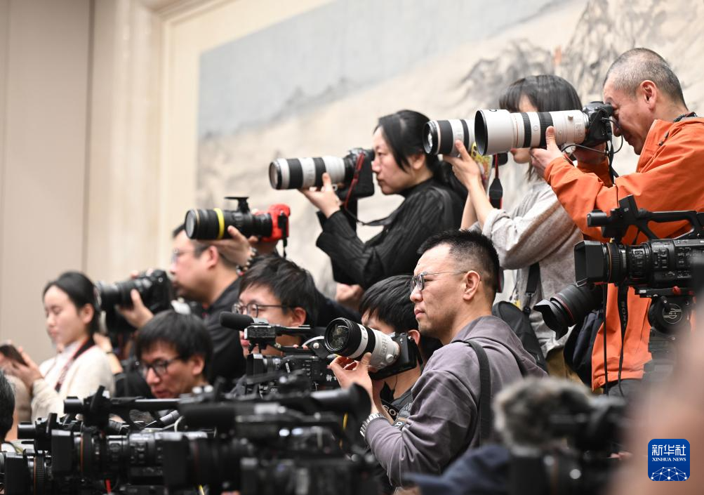 3月3日,全国政协十四届三次会议新闻发布会在北京人民大会堂举行。大会新闻发言人刘结一向中外媒体介绍本次大会有关情况并回答记者提问。这是记者在发布会上采访。