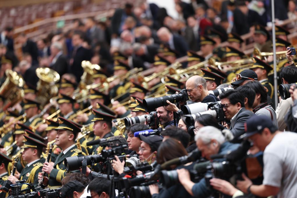 3月4日,全国政协十四届三次会议在北京人民大会堂举行开幕会。这是军乐团在演奏。