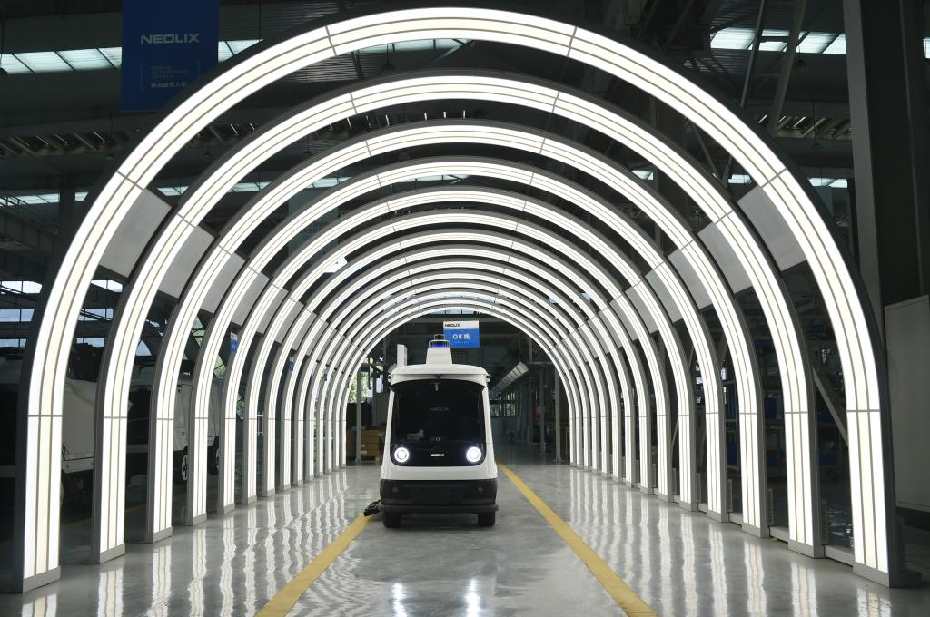 这是2023年9月8日拍摄的河南省安阳市安阳县一家无人驾驶车制造企业的装配车间。新华社记者鲁鹏摄