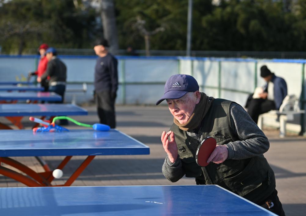 1月12日,市民在天津王串场体育公园打乒乓球。新华社记者 孙凡越 摄