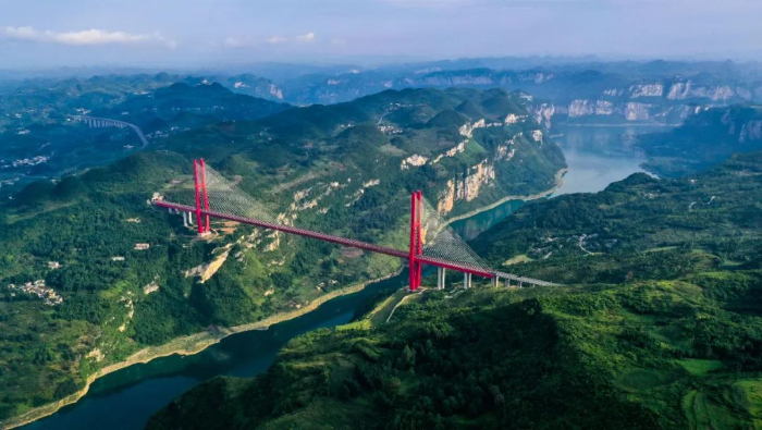 这是贵州贵阳至黔西高速公路鸭池河大桥(2021年7月23日摄,无人机照片)。新华社记者 杨文斌 摄