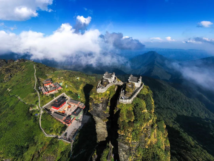 这是2021年9月27日拍摄的贵州省铜仁市梵净山风光(无人机照片)。新华社记者 杨文斌 摄