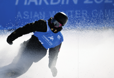中国选手杨文龙在第九届亚冬会单板滑雪男子大跳台决赛比赛中(2025年2月10日摄)牟宇摄/本刊