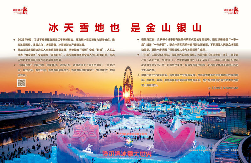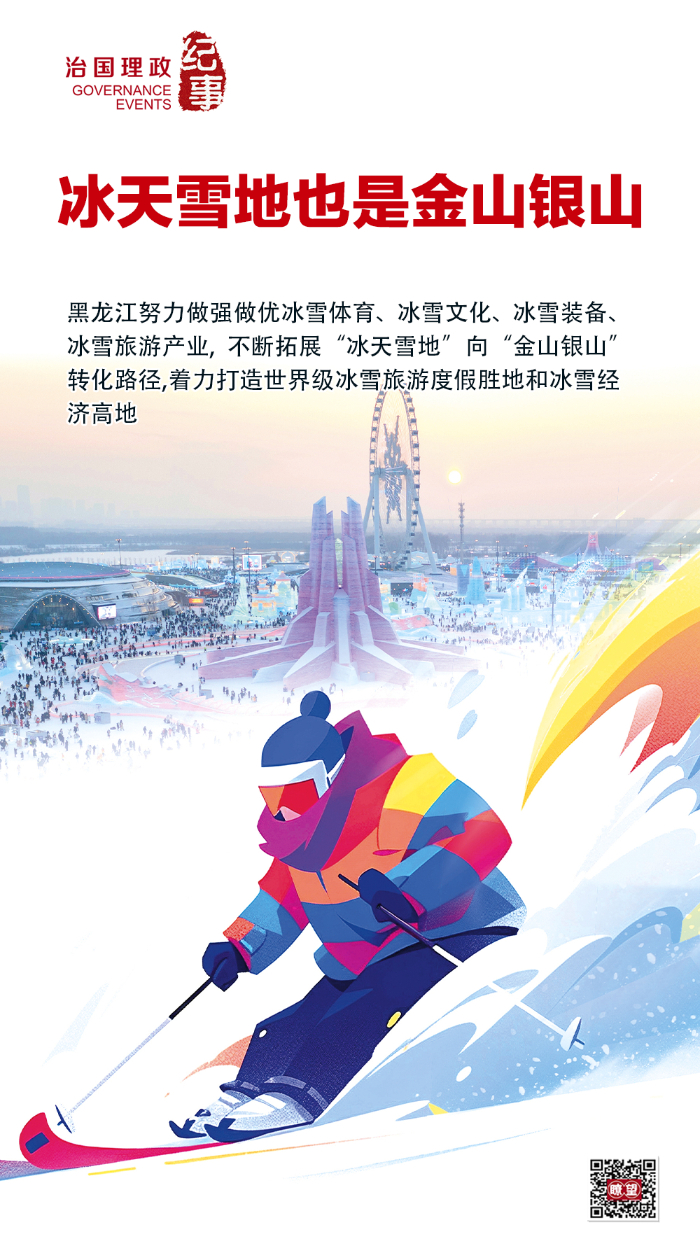 ◇黑龙江以冰雪经济为切入点推动高质量发展,把曾经的“短板”变成“长板”,人们从过去“怕冷猫冬”变成现在“迎客盼冷”,寒冷清寂的冬季变成人气红火的旺季,在冰天雪地上塑造高质量发展新动能新优势。