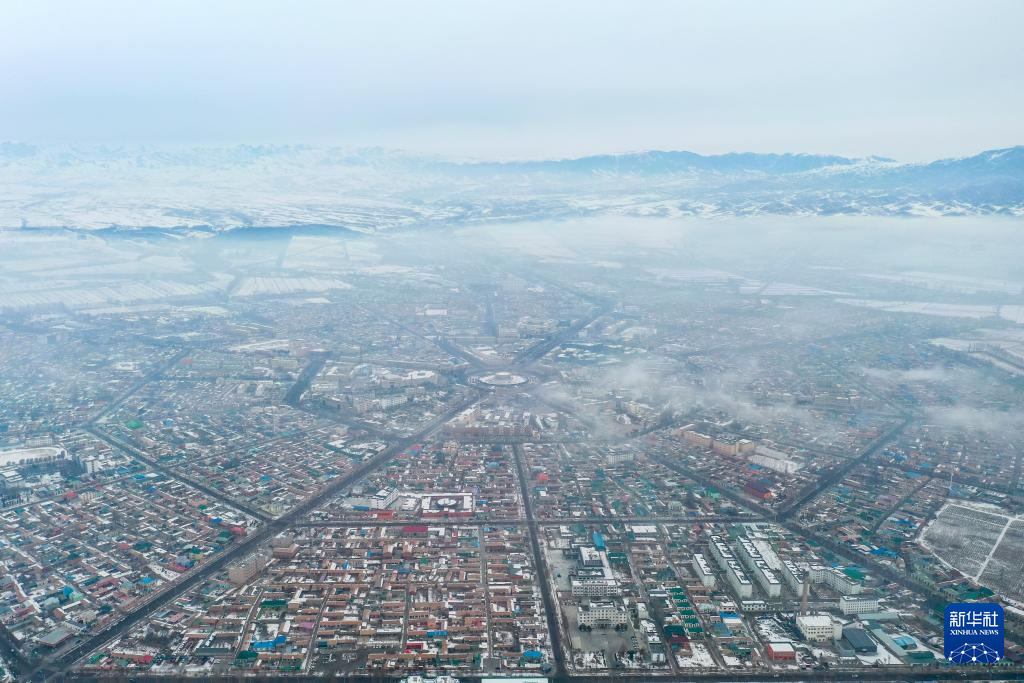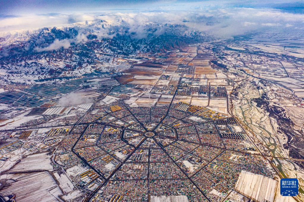 这是新疆伊犁哈萨克自治州特克斯县八卦城(2023年12月30日摄,无人机照片)。新华社发(周美玲 摄)