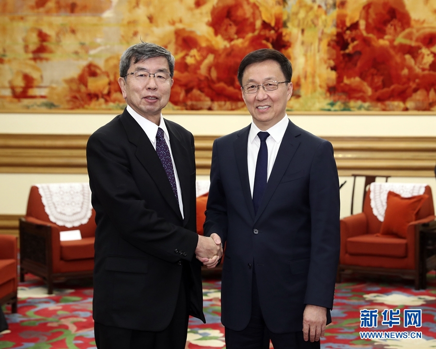 12月3日,中共中央政治局常委、国务院副总理韩正在北京中南海会见亚洲开发银行行长中尾武彦。新华社记者 丁林 摄