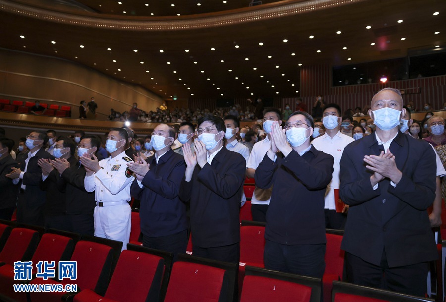 为庆祝中国共产党成立100周年,国家大剧院精心复排新制作的经典民族歌剧《党的女儿》7月13日至18日精彩亮相。18日晚,中共中央政治局常委、中央书记处书记王沪宁观看演出。新华社记者 刘卫兵 摄