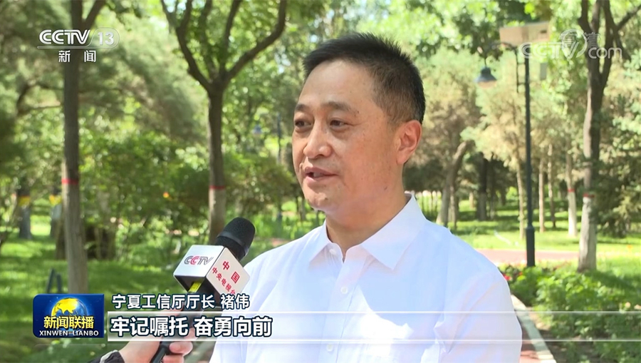宁夏工信厅厅长 褚伟:沿着总书记指引的方向,以创新驱动为引领,促进工业经济实现高质量发展,牢记嘱托、奋勇向前,扛起建设黄河流域生态保护和高质量发展先行区的历史使命。