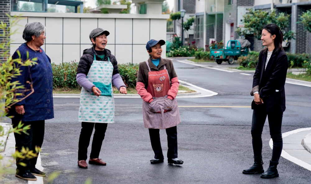 江苏省泗洪县临淮镇胜利社区党总支书记刘元梦(右一)在小区内和居民拉家常(2022年10月26日摄)。洪泽湖畔的江苏省泗洪县临淮镇胜利社区,是渔民集中搬迁上岸后形成的新型农村社区。
