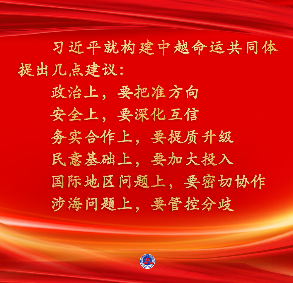 两位总书记都认为,中越作为友好近邻,理想相同,理念相通。作为好邻居、好伙伴、好兄弟、好同志,中越构建具有战略意义的命运共同体具有天时、地利、人和的独特优势。双方应该继承老一辈领导人缔结的传统友谊,共同努力构建命运共同体,走好各自的现代化道路,实现互利共赢、美美与共,造福两国人民,也为地区和平与繁荣作出积极贡献。
