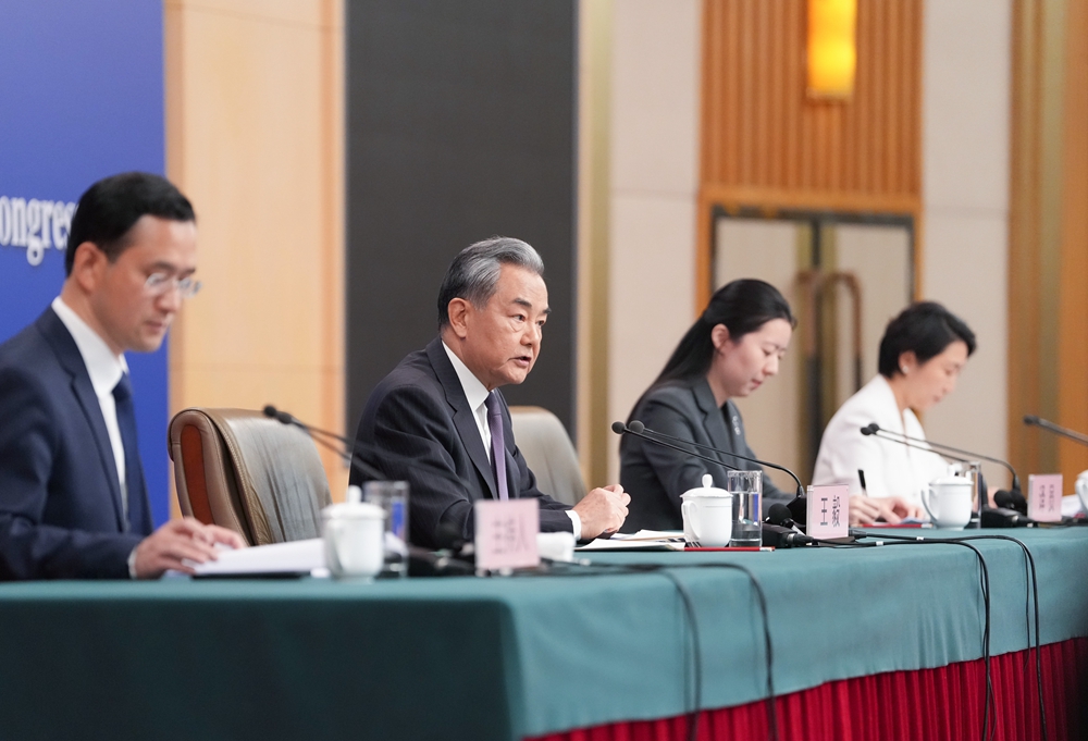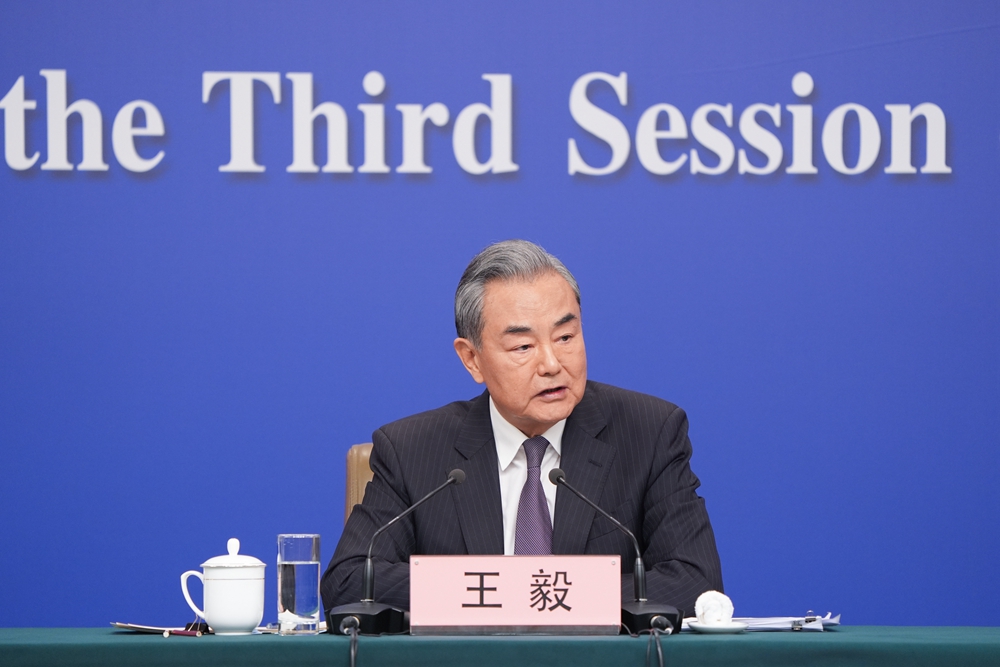 3月7日,十四届全国人大三次会议在北京梅地亚中心新闻发布厅举行记者会。中共中央政治局委员、外交部长王毅就中国外交政策和对外关系回答中外记者提问。 新华社记者 陈晔华 摄